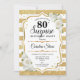 Feminine design with faux glitter gold. Features stripes, white roses, script font and confetti. Perfect for an elegant birthday party. Can be personalized to show any age. Message me if you need further customization.