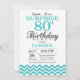 Surprise 80th Birthday Invitation with Teal Chevron. Black and White. Adult Birthday. Man or Women Bday Invite. For further customisation, please click the "Customise it" button and use our design tool to modify this template.