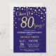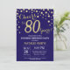Surprise 80th Birthday Navy Blue and Gold Diamond Invitation