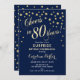 Surprise 80th Birthday Party - Gold Navy Invitation