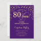Surprise 80th Birthday Party - Purple Gold Invitation