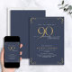 This beautiful invitation features hand lettered calligraphy artfully presenting 'ninety' in luxurious hand lettering against a navy blue background, adorned with delicate gold swirls in the corners top and bottom. This image will have all your guests excitedly anticipating your fabulous ninetieth festivities!