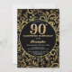 Surprise 90th Birthday Black and Gold Floral Invitation