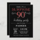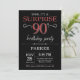 Surprise 90th Birthday Invitation with Black and Red Glitter Background. Chalkboard. Adult Birthday. Men or Women Bday Invite. Any age. For further customisation, please click the "Customise it" button and use our design tool to modify this template.