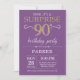 Surprise 90th Birthday Invitation with Purple and Gold Glitter Background. Chalkboard. Adult Birthday. Men or Women Bday Invite. Any age. For further customisation, please click the "Customise it" button and use our design tool to modify this template.