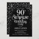 Surprise 90th Birthday Party - Silver & Black Invitation