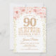 Surprise 90th Birthday Party - White Gold Pink Invitation
