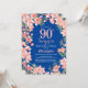 Surprise 90th Birthday Pink Floral Flowers Blue Invitation