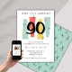 Step back in time with this 90th surprise birthday invitation, channeling midcentury modern vibes. The aqua, coral, and yellow backdrop sets the stage for a retro celebration. Stand out with a sleek '90' design that is perfect for a sixtieth milestone celebration, suitable for both him and her. Mark the big 9-0 with a nod to the 50s in this atomic era-inspired adult birthday invitation and make it a memorable event!