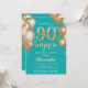 Surprise 90th Birthday Teal and Gold Balloons Confetti Invitation. For further customisation, please click the "Customise it" button and use our design tool to modify this template.