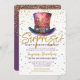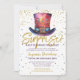 A gorgeous surprise birthday 'keep it under your hat' party invitation. This fabulous invitation features blue, pink and purple watercolor top hat on a gold and blue confetti background. Easy to personalise with your own surprise birthday party celebration details.