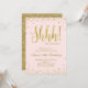 Faux gold confetti splatters blush pink party invitation with sparkle design for surprise birthday party. Perfect for modern birthday.