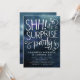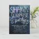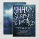 Elegant adult surprise birthday party invitation featuring navy blue watercolor background with white typography text that says "SHH! it's a SURPRISE party" with swirls. Customise this template card by adding your own party information.