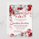 A gorgeous surprise birthday party invitation. This fabulous invitation features red and white balloons on a red confetti background. Easy to personalise with your own surprise birthday party celebration details.