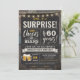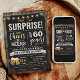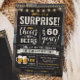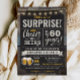 Surprise Cheers and Beers 60th Birthday Invitation featuring chalk board and lettering with customise-able age.