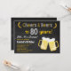 Surprise Cheers and Beers 80th Birthday Invitation. Adult Birthday. Beer Birthday for men. Chalkboard Black and White Background. For further customisation, please click the "Customise it" button and use our design tool to modify this template.