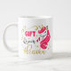 Some days, a regular size cup of joe just won’t do. When you need that extra jolt of caffeine, reach for your extra-large coffee mug from Zazzle. It will accommodate a full 20-ounce Venti pour. Perfect for soup, cereal, ice cream, or chilli too! This giant mug features a C-shaped handle for comfortable sipping.