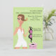 Gorgeous, sassy bridal shower invitation features a blushing brunette bride-to-be asking can you keep a secret while uncovering her cute lingerie. Comes with a Secret bag and a sparkling chartreuse green underlay. The back is in beautiful opposing colours.