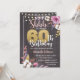 Rustic Wood Birthday Invitation Card with Blush Pink Cotton Floral, Gold Glitter Numbers & String Lights