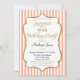 An elegant surprise birthday party invitation in peach and gold, featuring peach and white stripes & gold glitter text frame. The glitter text frame on this classy and classic birthday party invite features a shadow to give a raised appearance. This peach and gold surprise party invite is sure to please that special birthday star in your life. Perfect for milestone birthdays such as 18th 20th 21st 30th 35th 40th 45th 50th 55th 60th 65th 70th 75th 80th 85th 90th 95th and 100 ...or any age!
