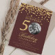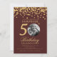 SURPRISE Photo 50 Birthday Gold Confetti Burgundy Invitation