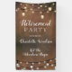 Elegant surprise retirement party banner featuring shimmering string lights and a combination of script and open face typography on a dark blue ombre background for a soft magical shimmering atmospheric effect. Perfect for men's or women's retirement celebration.