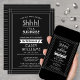Can you keep a secret? Invite colleagues, coworkers, family and friends to an elegant and exciting surprise retirement celebration with custom black and white party invitations. All wording on this template is simple to personalise, including message that reads "Shhh! It's a SURPRISE." The design features a modern striped border, classic vintage art deco typography and stylish script calligraphy. The gender neutral design is also suitable for either a man or a woman. Congratulations and Happy Retirement!