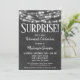 A fun black and white chalkboard surprise retirement party invitation with glowing lights at the top.