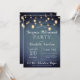 Elegant blue surprise retirement party invitation featuring shimmering string lights and a combination of script and open face typography on a dark blue ombre background graduating from lighter blue in the centre to darker blue on the outer edges for a soft shimmering atmospheric effect. Perfect for men's or women's retirement celebration. For further customisation, please click the "Customise it" button and use our simple design tool to modify this template.