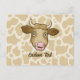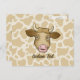 Surprised Cow's head illustration. Seamless cow pattern background. Custom text on both sides.