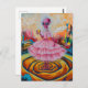 Surreal Alien Lady in Pink With Orange Juice Postcard