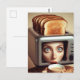 A woman with a toaster on her head sipping coffee surreal breakfast art