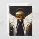 A surreal cheeseburger angel woman with her head replaced by a cheeseburger fantasy art
