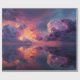 Dramatic sky filled with voluminous clouds in shades of purple, pink, and orange. These clouds are reflected on a calm body of water, creating a symmetrical and surreal effect. The light from the setting or rising sun illuminates the clouds, giving them a radiant glow. The overall mood is serene yet powerful, with a sense of awe-inspiring natural beauty.