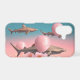 A surreal, pastel-toned paradox where strength drifts gently into softness. Sharks float effortlessly above a calm sea, lifted by delicate pink balloons, while blossoms obscure the figure below—turning instinct and danger into something quiet and dreamlike. The warm horizon and smooth retro palette create a sense of suspended time, where fear dissolves into curiosity and contrast becomes harmony. This artwork feels whimsical yet symbolic, blending irony, beauty, and imagination into a visually unforgettable scene that invites playful interpretation.