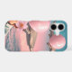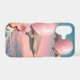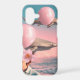 A surreal, pastel-toned paradox where strength drifts gently into softness. Sharks float effortlessly above a calm sea, lifted by delicate pink balloons, while blossoms obscure the figure below—turning instinct and danger into something quiet and dreamlike. The warm horizon and smooth retro palette create a sense of suspended time, where fear dissolves into curiosity and contrast becomes harmony. This artwork feels whimsical yet symbolic, blending irony, beauty, and imagination into a visually unforgettable scene that invites playful interpretation.