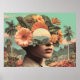 Surreal Female Portrait with Floral Elements Poster