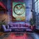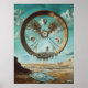 This surrealist painting presents a massive, floating circular structure, with intricate abstract elements and mysterious figures suspended within it. The barren landscape below, combined with the ethereal atmosphere and strange, dreamlike details, creates a visually arresting scene that invites interpretation. The juxtaposition of reality and imagination in this artwork makes it a perfect choice for fans of surreal and thought-provoking decor. Available in various sizes and formats, it adds a bold, imaginative touch to any space.