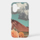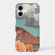 Clouds float above a vibrant, surreal valley with colourful flowers in the foreground and mountains in the background. The palette blends warm and cool tones, creating a balanced composition.