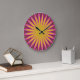 Add some color and style to your wall art decor in the home, room or office with a round wall clock. Purple and yellow color hue with the design of s a surreal flower and petals. Spiritual awareness and unique decorative artwork for room design and color accent.