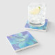 The coasters are gorgeous, a quality feel and heavy weight. They look like a precious archeological find. A rustic stone juxtaposed with a modern floral black and white print. I like the way the print goes slightly imperfect on the cut stone edges giving them a kind-of natural beauty.