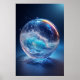 Surreal Glass Sphere with Dynamic Water Waves Poster