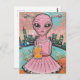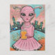Surreal Lady Alien in Pink With Orange Juice Postcard