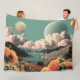 Surreal Mountain Landscape with Planets and Clouds Fleece Blanket