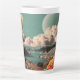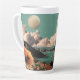 Surreal Mountain Landscape with Planets and Clouds Latte Mug