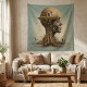 Introducing our captivating tapestry, a mesmerising blend of surrealism and artistic expression that transcends the boundaries between humanity and nature. In this breathtaking scene, the upper body of a woman gracefully morphs into a majestic root system, reminiscent of a flourishing tree. Her eyes, nose, and mouth seamlessly merge with the arboreal structure, symbolising the deep connection between mankind and the natural world.