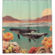 Surreal Ocean Scene With Whales And Coral Shower Curtain