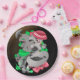 Serve up style with "Bits and Pieces", a bold and artistic paper plate featuring striking surrealist artwork. This eye-catching design showcases fragmented yet expressive faces, blending vibrant colors, playful accessories, and captivating eyes that create a mesmerizing visual effect.