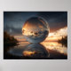 Surreal Reflective Sphere With Sunset Clouds Over Poster