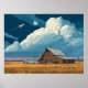 Surreal Sci-Fi Farm with Rocket Launch Illustratio Poster